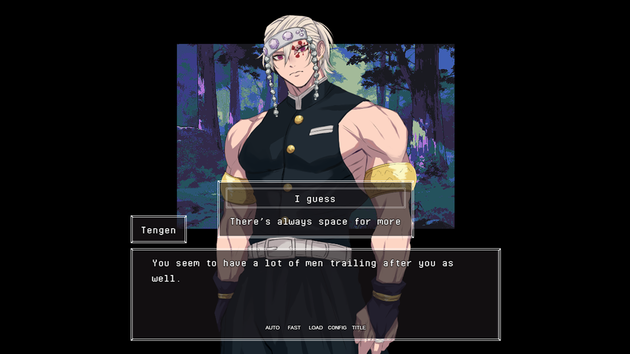 At a smoky gambling den, your path collides with Tengen Uzui, a flamboyant shinobi turned Demon Slayer trying to break free from his harsh upbringing.